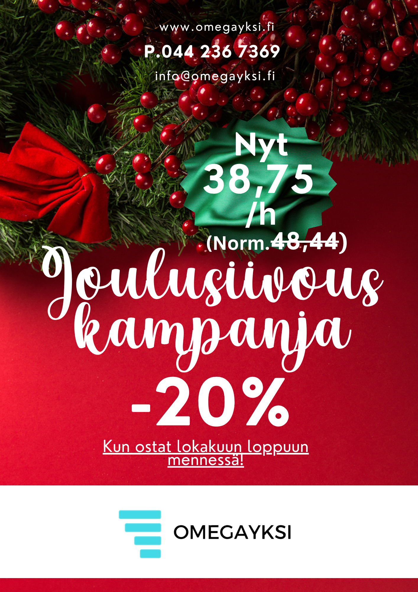 Omegayksi tarjoaa Joulusiivouskampanjan, jonka avulla kotisi saa juhlakuntoon ammattilaisten käsissä.